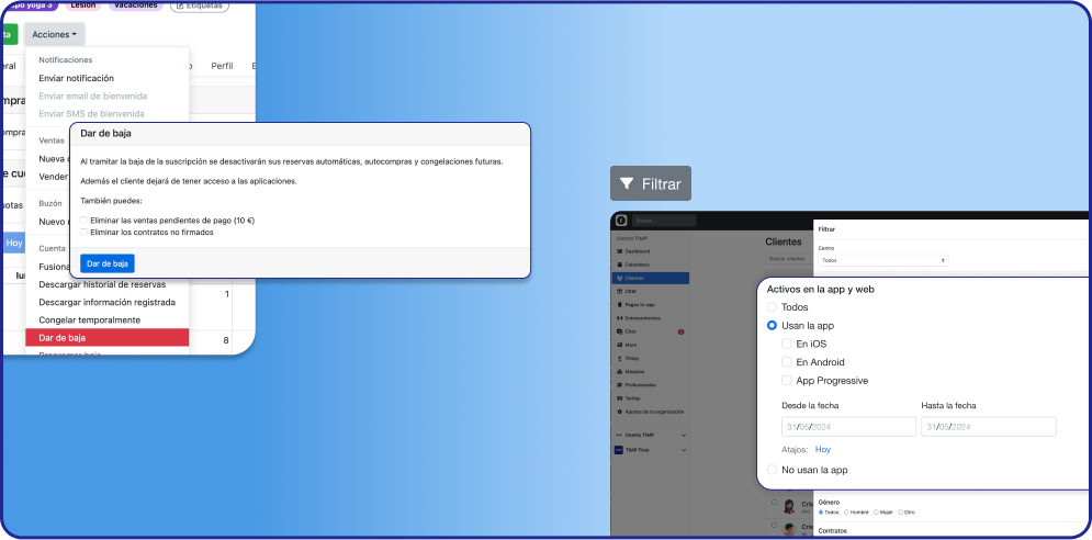 A parte, hemos unificado el filtro de Activos y Usan la app para poder ver los clientes que la utilizan en un periodo de tiempo, llamándose ahora Activos en la app y web.