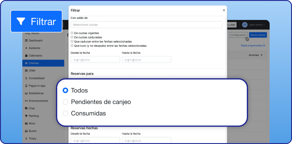 Nuevas opciones en el filtrado de clientes: Resevas pendientes de canjeo y Reservas consumidas