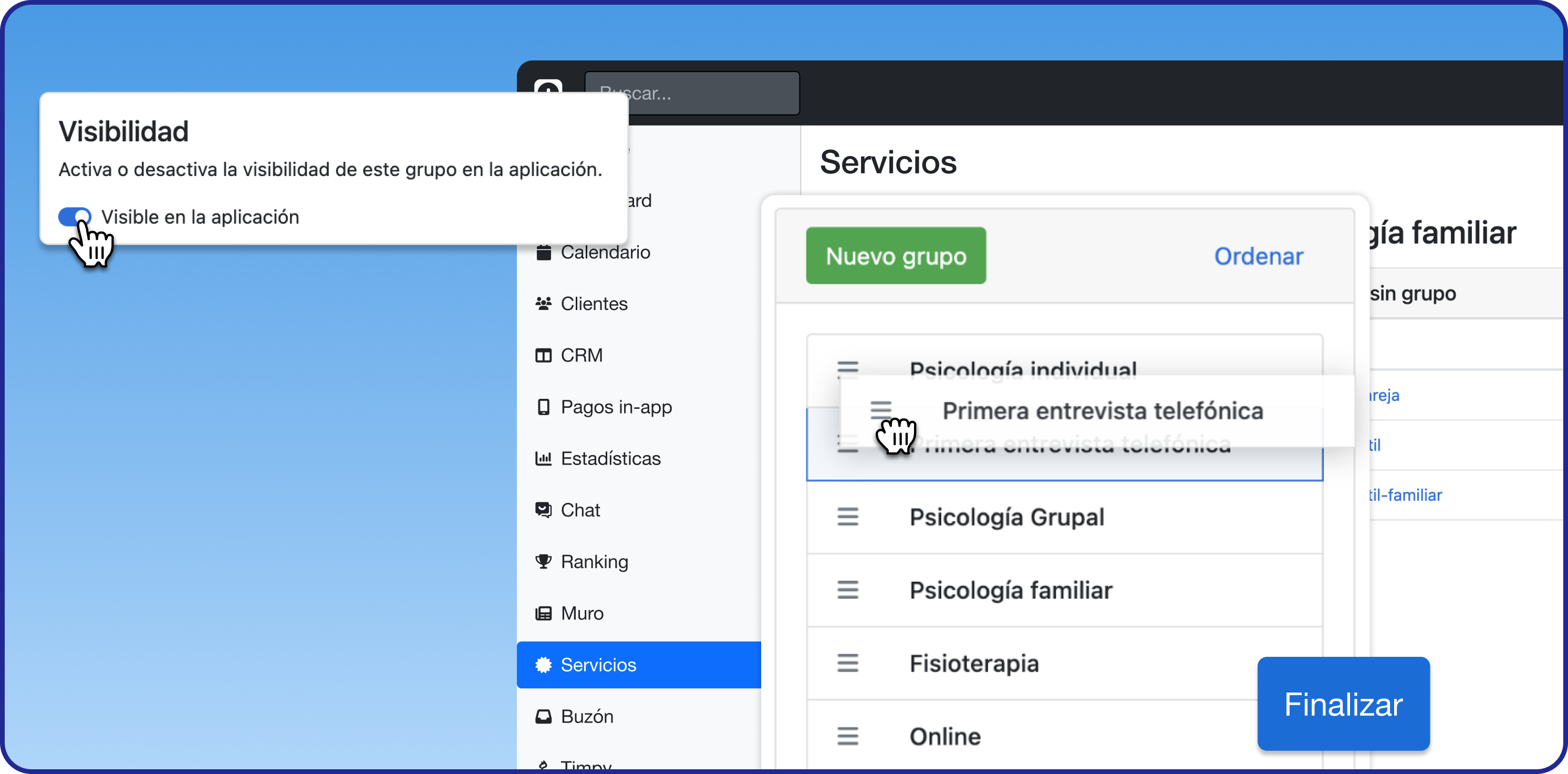 Inoltre, quando si crea o si modifica un gruppo di servizi, è possibile scegliere se visualizzarlo o meno nell'app.