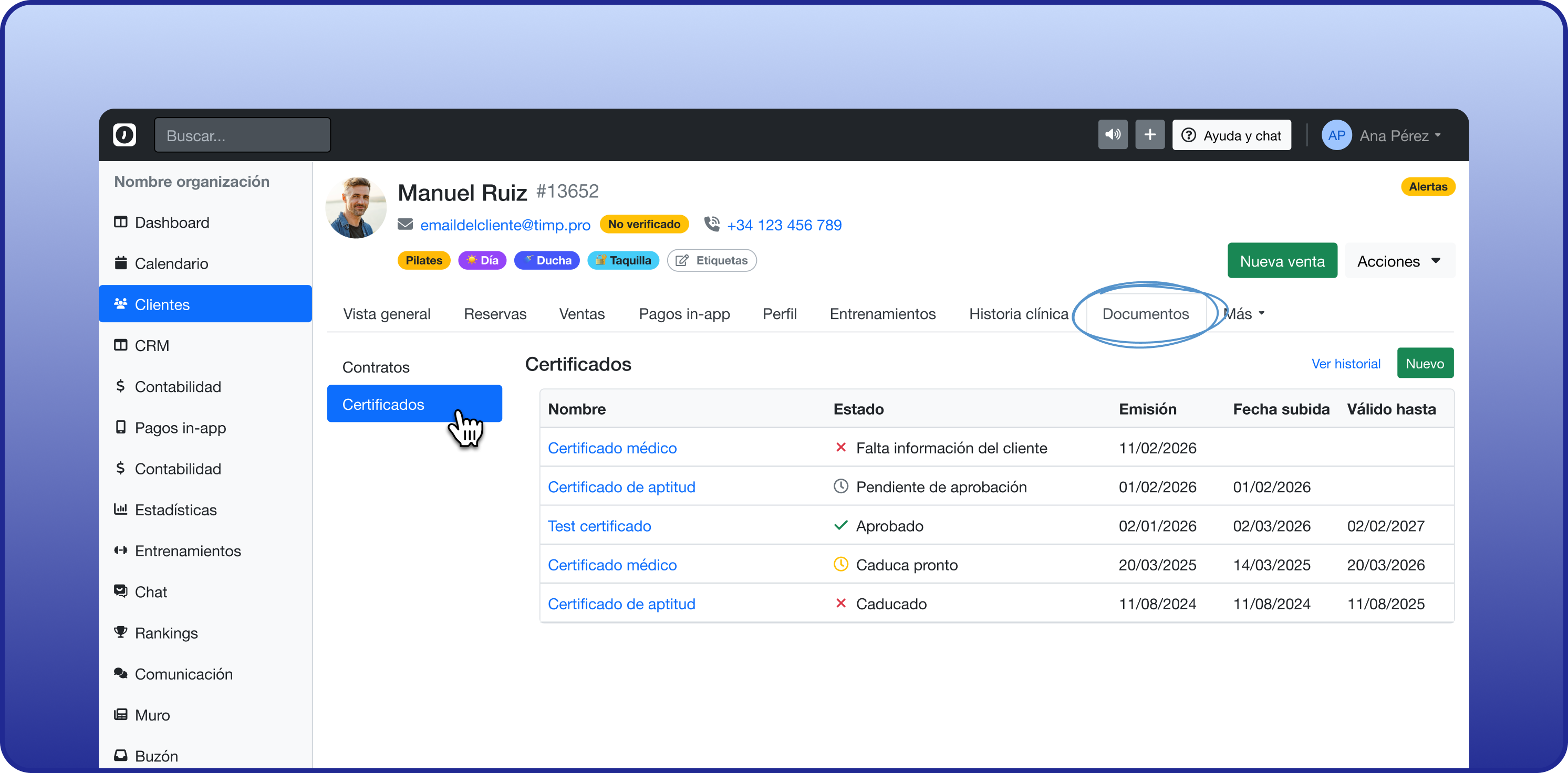 La scheda Contratti è stata rinominata Documenti e Certificati sono stati spostati in questa sezione.